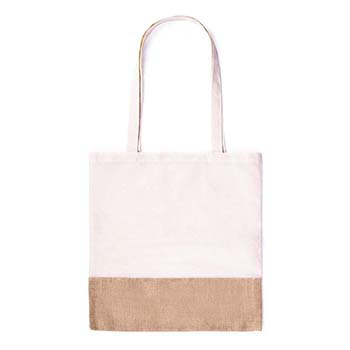 Eco-friendly bag in a resistant combination of natural materials -jute and cotton- of 245g/m2. Attractive, bicolour design and stitched finishing. 70cm, reinforced, long handles and resistance up to 8kg weight.