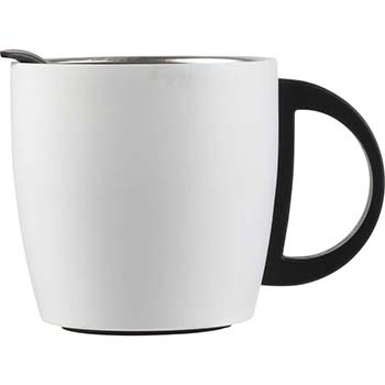 Stainless steel, double walled travel mug (350 ml). The lid has a silicone ring, the underside of the mug is anti-slip.