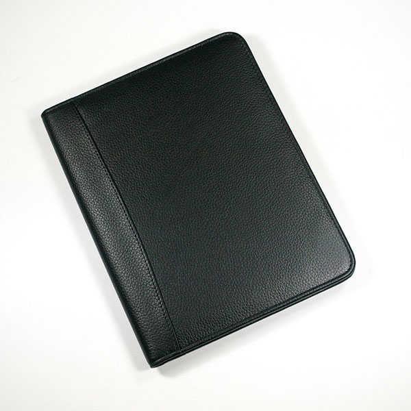 Melbourne A5 folder. Full hide grained nappa leather folder with leather internal spine business card pocket, pen pocket (pen not included) document pocket and A5 pad.