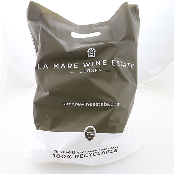 200g Sugar cane Polythene carrier bag. Sugar cane bag that comes with a punched handle. ECO certified as Iand#39;m green Polyethylene.
