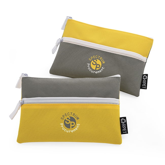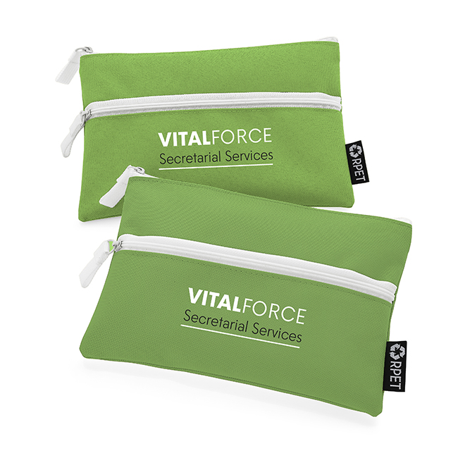 Handy size pencil case style cosmetic purse made from post-consumer recycled plastic bottles RPET. Perfect for any handbag and ideal for all life's essentials.