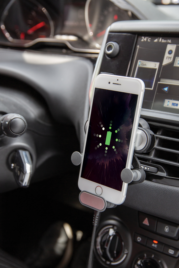 Universal phone holder that can be placed on the air vent of your car for hands-free navigation and calling.