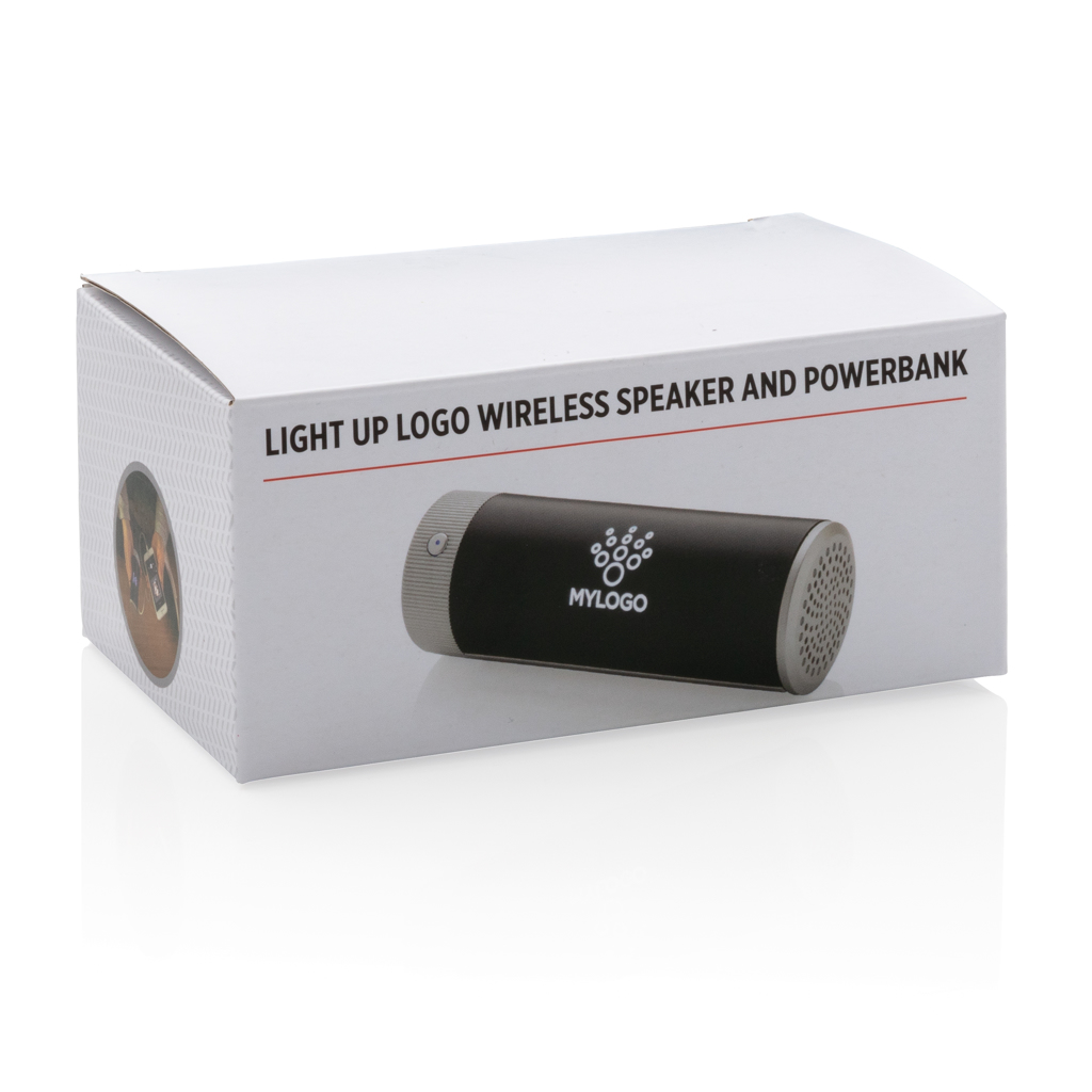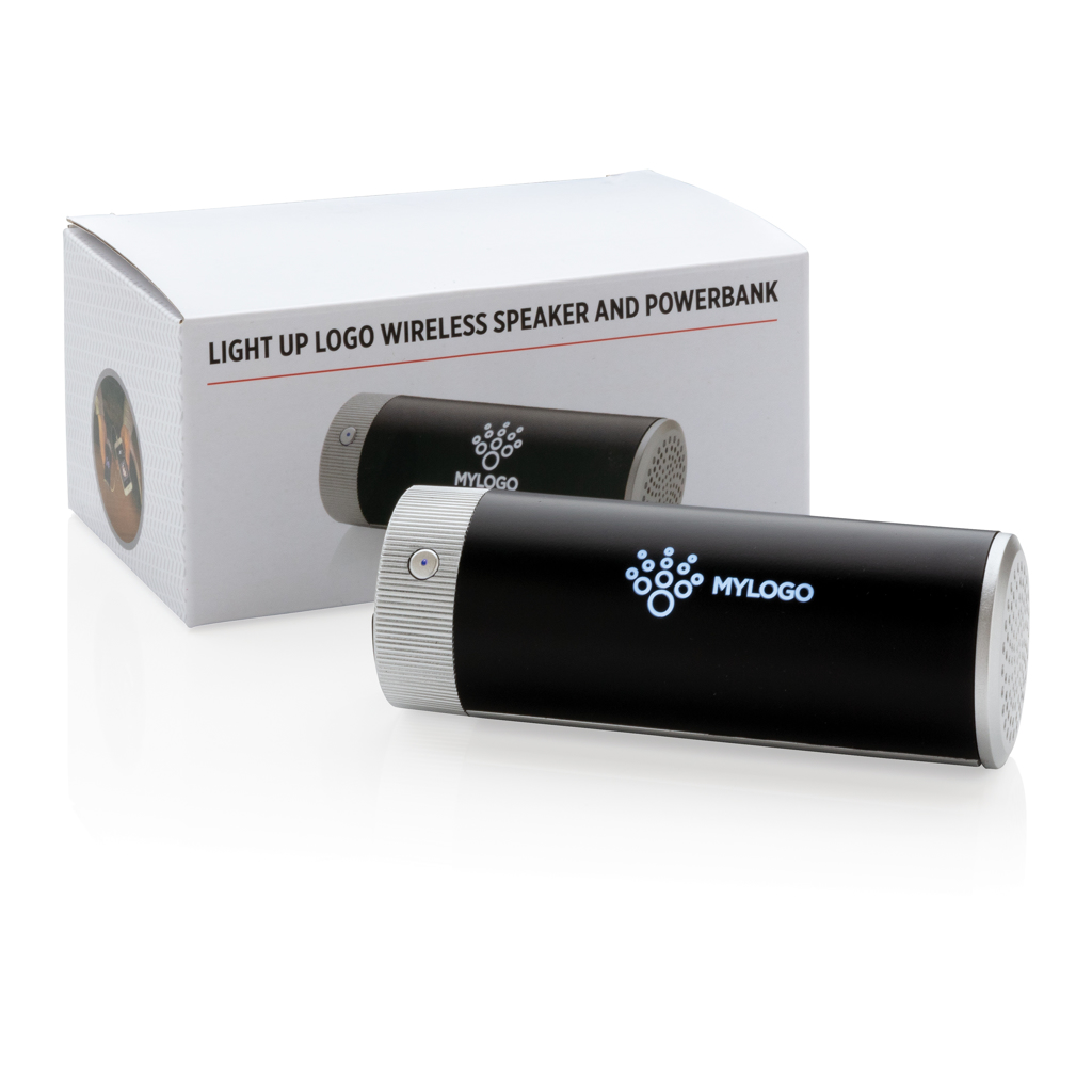 Unique 2 in 1 design 3W speaker and powerbank that can be customised with your logo on the ABS surface. The logo will light up for optimal exposure of your brand.