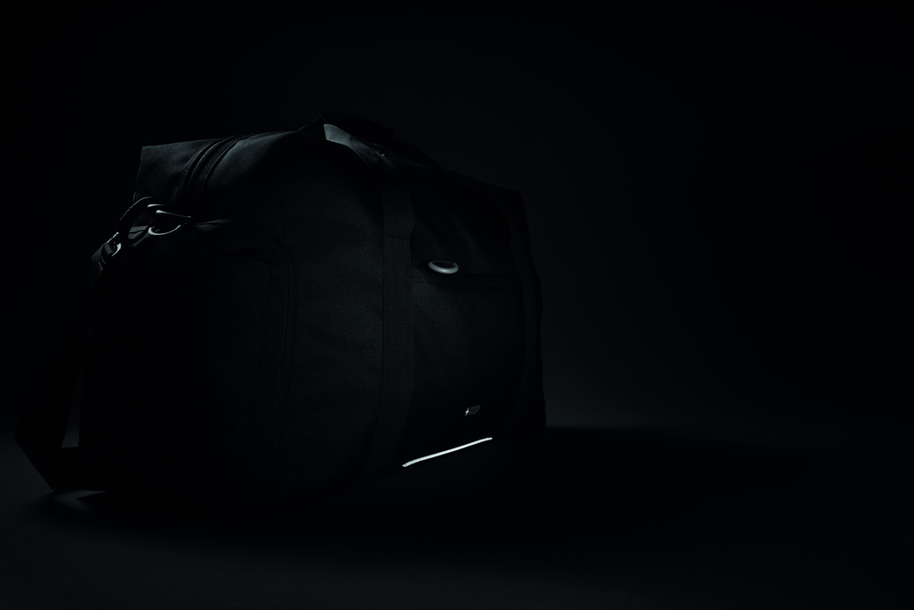 Side shoe compartment and front small zippered pocket. Another quick side access pocket. With padded shoulder strap. PVC free.