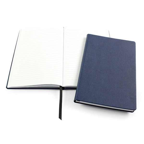 Biodegradable A5 Casebound Notebook with a textured metallic effect vegan cover made to order in the UK in a choice of 4 colours. Ideal for deboss, foil blocked branding it can be or printed one or full colour although the texture will show through. Product features include - Casebound hard backed notebook, 96 pages, 192 sides of 80gsm sustainably sourced paper (100% Recycled Paper also available please enquire), Radius corners to each page, Sewn bound for a perfect 180 degree lie flat finish, Choose from lined, squared or plain cream paper, lined or dot white paper, 100% recycled paper available please enquire, Black ribbon page marker, Made to order in the UK.