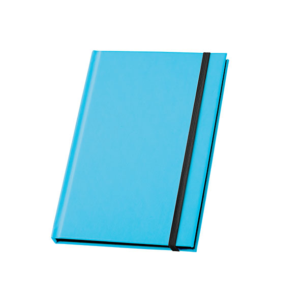 A5 notepad with hardcover in fluorescent PU. 96 sheets of white lined 70gsm paper. Black edged paper. Black elastic band and ribbon marker.