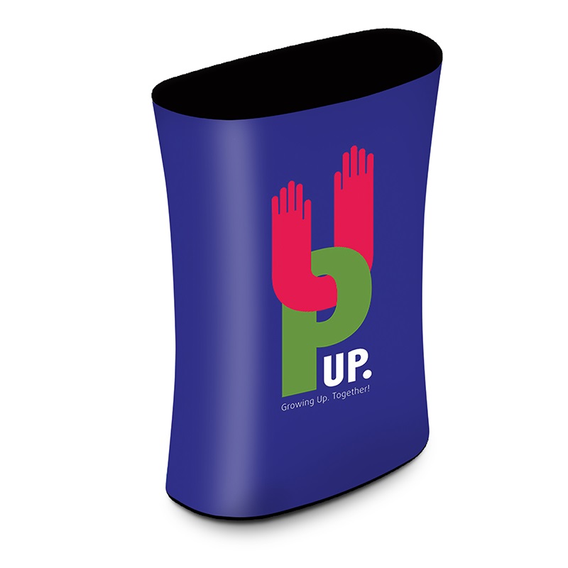 The Long Oval Counter is a fantastic option for trade shows and exhibitions. With just a simple press, the counter rises automatically on its concertina mechanism, eliminating the need for tools or screws.