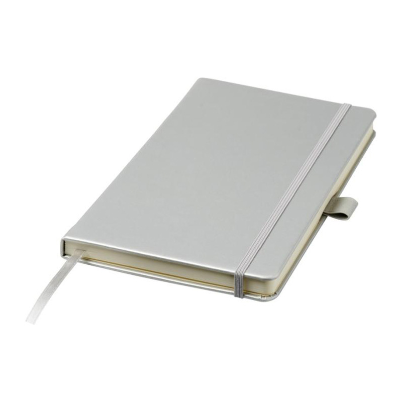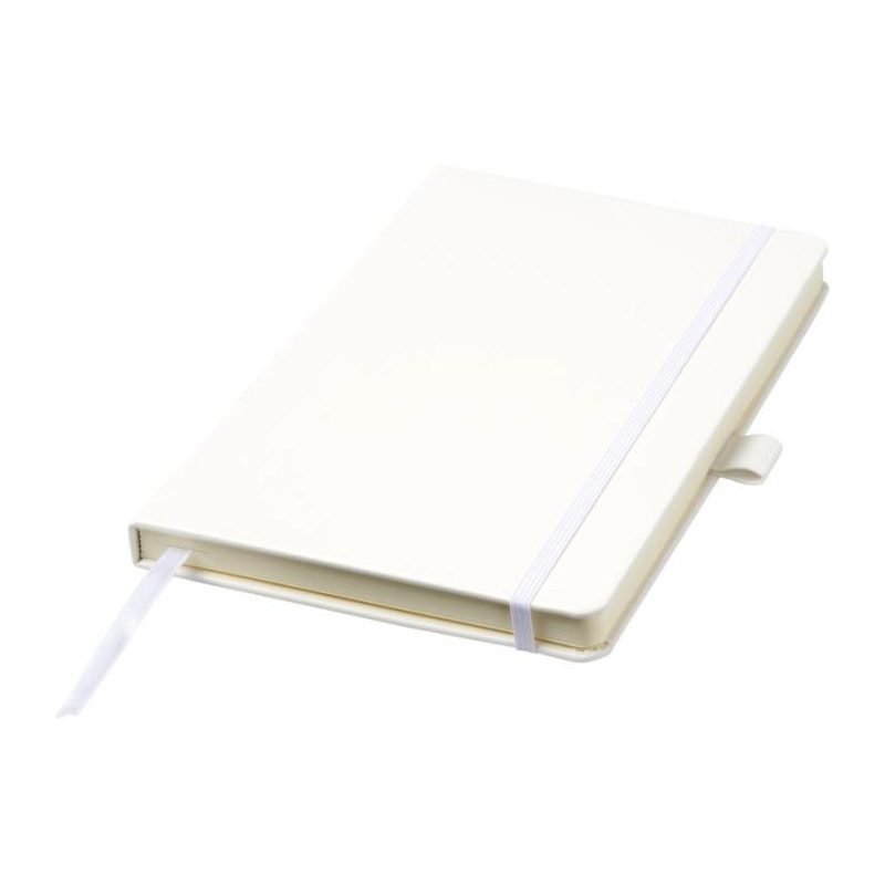 Imitation leather A5 (14.2 cm x 21.4 cm) notebook with elastic band, ribbon marker, pen loop and accordion back pocket. Includes 96 sheets of lined cream paper in 80 g/m2 and is offered in a Journalbook white sleeve.
