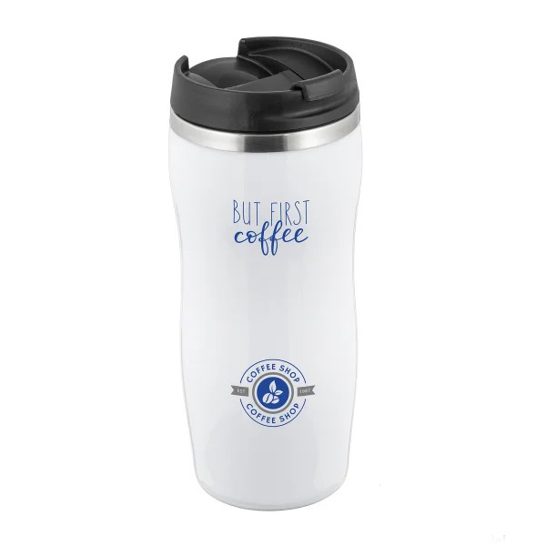 Classy double-walled coffee-to-go mug with flip lid and 380 ml capacity. The double-walled BPA-free mug made of stainless steel and plastic is particularly lightweight and is suitable for cleaning in the dishwasher