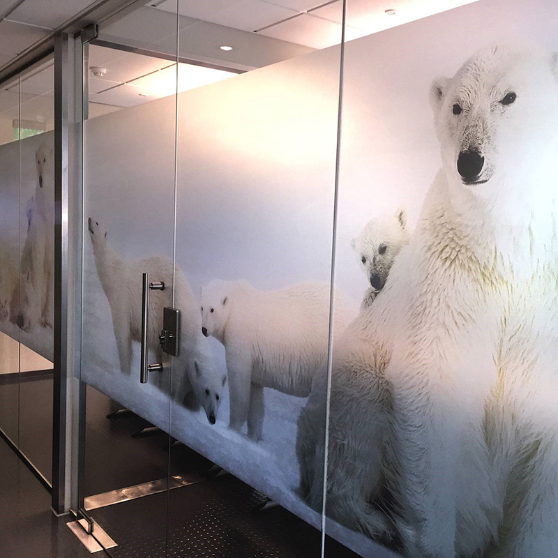 This frosted sticker vinyl has a translucent finish with an etched look effect, with the added benefit that it can be printed in full colour to create stunning internal and external displays. The adhesive ensures a bubble free dry application even on large surfaces.