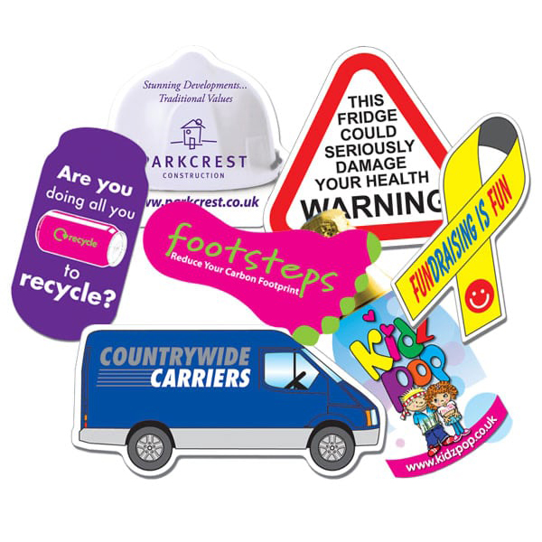 Choice of standard shapes: Rectangle 55x85mm / Square 60x60mm and 70x70mm / 70mm dia / Lightbulb 62x92mm / Speech Bubble 50x90mm / Octagon 70x70mm / Drink Can 52x97mm / Lorry 45x97mm / House 70x70mm / Smart Car 53x84mm
