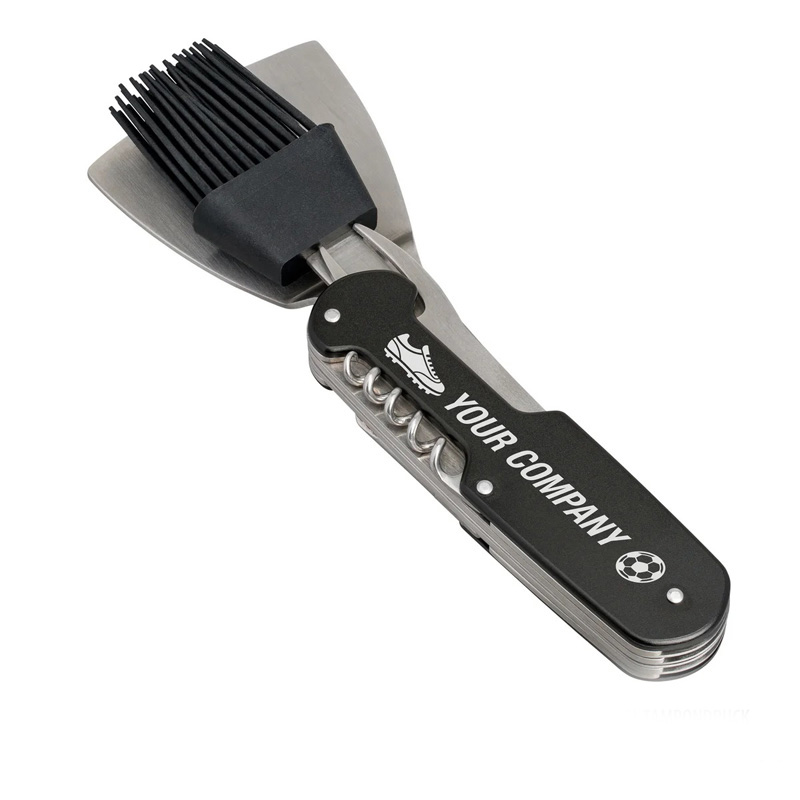 Who likes to carry their whole household in their backpack? Without big efforts, our BBQ talent saves your dinner during a barbecue in the public garden, when you are camping or taking a long journey. Hidden inside, you will find a corkscrew, a barbecue turner, a pickling brush, a bottle opener, a can opener, a knife and a fork.