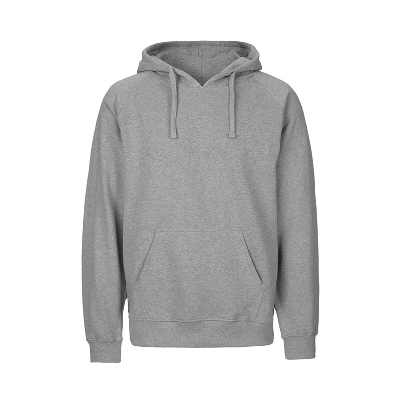 Heavyweight hooded sweatshirt with kangaroo pocket at front and double lined hood with adjustable flat strings. Featuring inside neck tape, double-layered rib at cuffs and waistband. Made from ringspun 300gsm combed cotton and has a soft brushed inside.