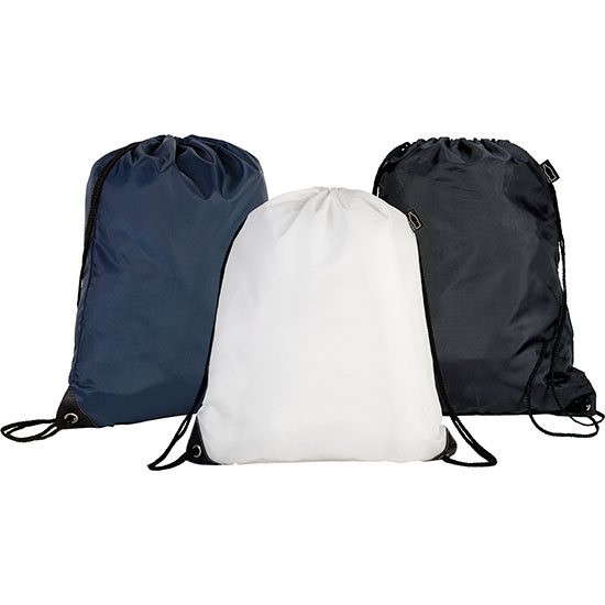 Good quality larger drawstring backsack bag made from REACH compliant Rpet 210d with PU backing. Metal eyelets and reinforced PU corners.