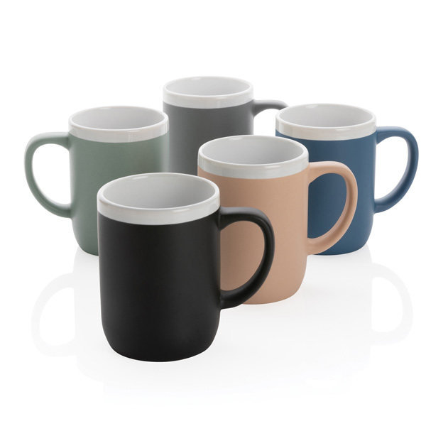 This ceramic mug has a clean and simple look for any tabletop. The clean white rim detail adds a beautiful clean touch. The mug has a shiny inner finish and matt outer finish. The mug is dishwasher safe and tested in accordance with EN12875-1 (at least 125 washing cycles for all decoration methods). Packed in a gift box. Capacity 300ml.