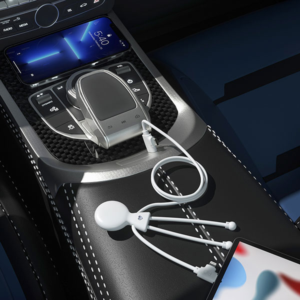 Xoopar Mr Bio Fast cable. Fast charging 1 metre multi cable. Adaptors include combined USB-C/Lightning and combined USB-C/USB. Suitable for phones, tablets and laptops. GRS certified recycled materials.