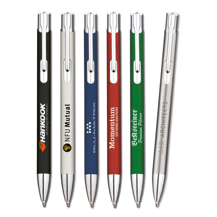 A highly popular all metal push action ballpen in matt lacquered black, silver, dark blue, red and bottle green with bright chrome fittings and a quality metal Parker style black ink refill.