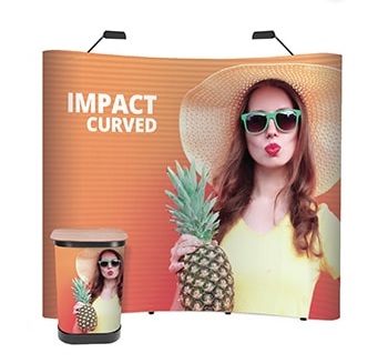 The Premium Quick+ Curved Display Bundle includes the full magnetic display backwall kit which can be used single or double-sided, the unique Zenith transit case which converts to a counter and two PS950-1000 LED lights.