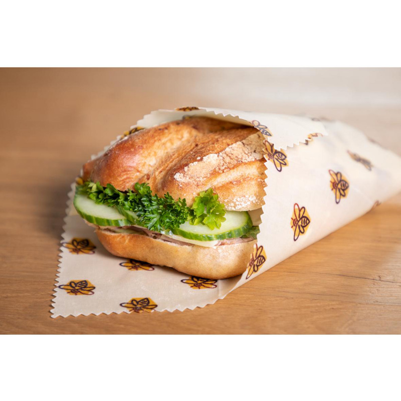 The sustainable and environmentally-friendly alternative to aluminium foil and cling film. Perfect for wrapping sandwiches, fruit, and vegetables or covering food and liquids in bowls and dishes. During use, through body heat alone, the beeswax cloth forms perfectly around foods, bowls or containers. The heat welds the folded down edges. It can be removed just as easily and can be washed with cold or lukewarm water for re-use. With careful handling, the cloth can be re-used over a long period of time.