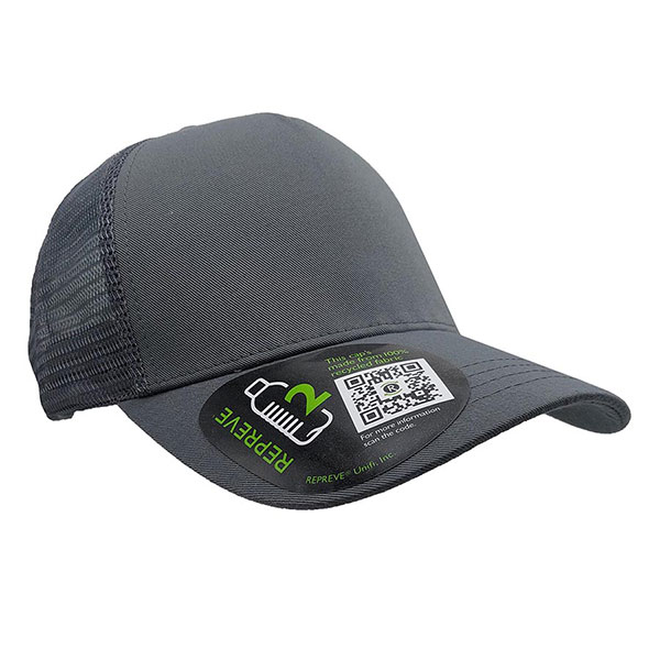 Recycled trucker style baseball cap. 5 panel cap. Made using REPREVE recycled fabric. 1 size fits all with classic snap adjuster. The quoted price is for a plain cap. The default personalisation method for this cap is embroidery. Personalisation charges are shown separately. Print area - 120 x 60mm48 x 43 x 55x 14kg per carton packed in 150 units per carton