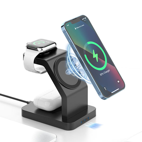 Xoopar Icon 3 in 1 magnetic wireless charger. Multi charger for mobile. watch and earbuds. Magsafe compatible. Made from 35% recycled plastic. Individual packaging Yes. Gift boxed - Yes. Inner/Outer quantities 40. Eco packaging ? Yes FSC card ? recycled .