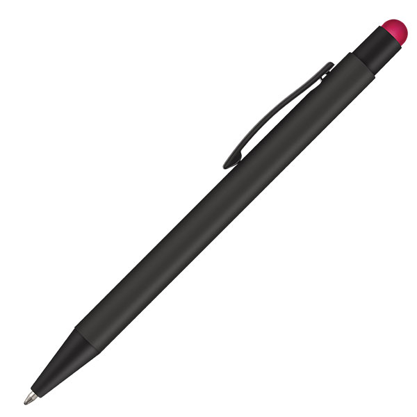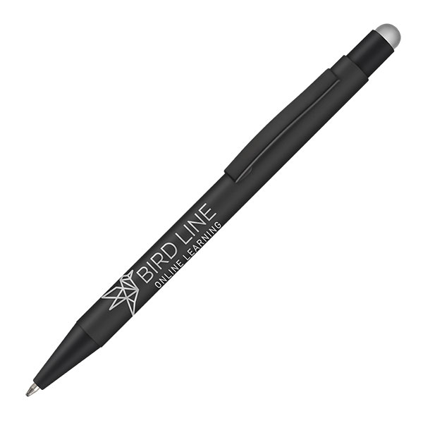 Ergo-i Noir soft feel ballpen. Push action. Soft touch rubberised barrel and stylus. Black trim. Refillable. Ink Colour: Black.