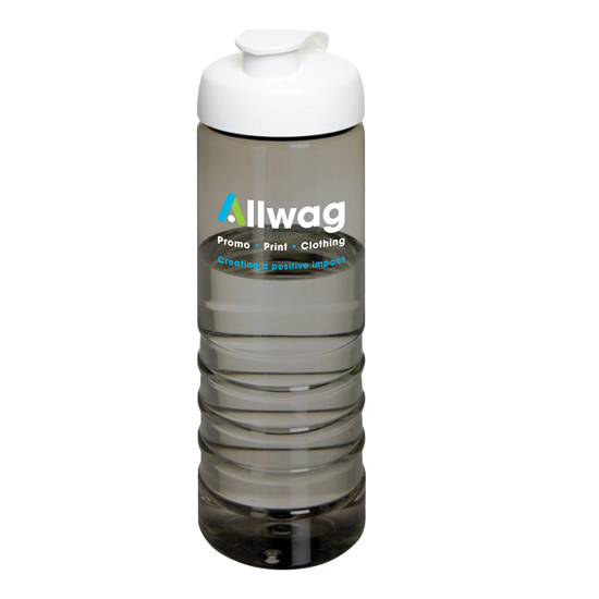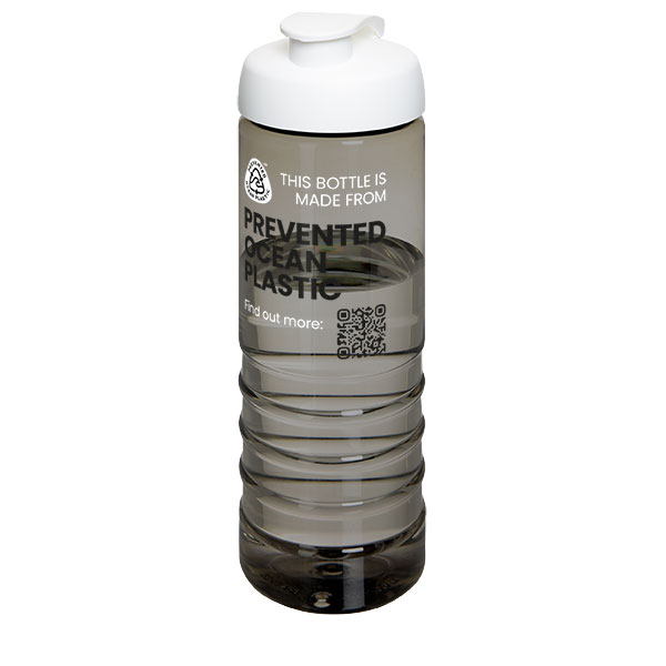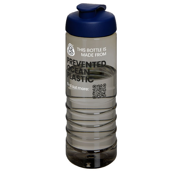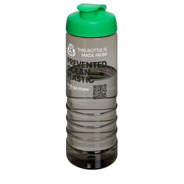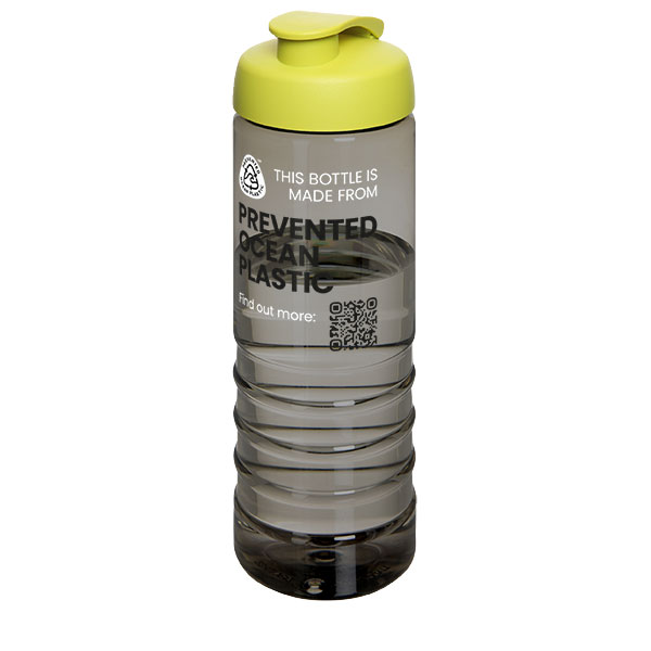 H2O Active Eco Treble sports bottle. Capacity: 750ml. Made from Prevented Ocean Plastic. Ribbed body with spill proof flip lid. lid is made from in-house pre-consumer recycled plastic. Mix and match colours. Top rack dishwasher and microwave safe/Dishwasher safe.