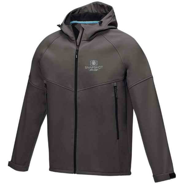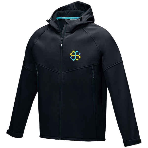 Elevate recycled softshell jacket. Waterproof and breathable. Three layer bonded fabric. GRS certified recycled zip. Adjustable cuffs with velcro closure. Fabric: Woven of 80% GRS certified recycled polyester and 18% Polyester and 2% Elastane. 280 g/mand#178;. Bonding. Micro fleece of 70% GRS certified recycled polyester and 30% Polyester. Weight: 280g/mand#178;. Sizes: XS. S. M. L. XL. 2XL. 3XL. Please note the unit price is for plain product. The default decoration for this product is screen printing. Individually polybagged. GRS certified recycled polyester polybag