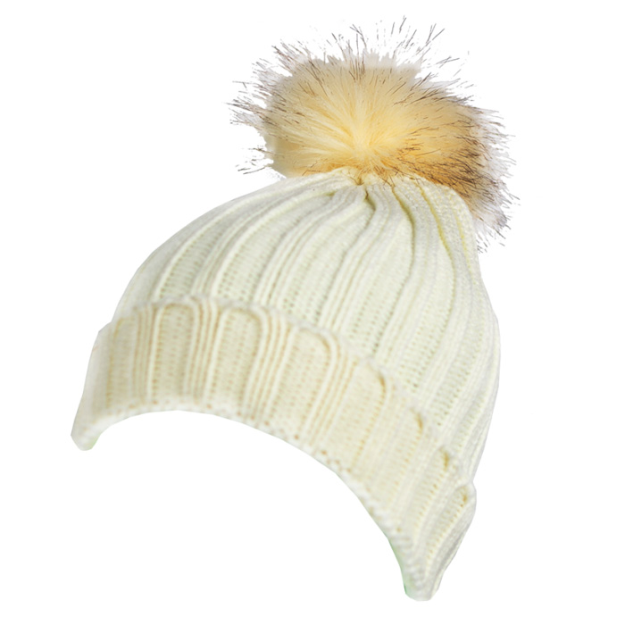 100% Acrylic ribbed knit beanie with turn-up and a Faux Fur bobble. Available in three colourways popular in the fashion world. It is an ideal addition to any campaign or customer looking for a retail quality product.