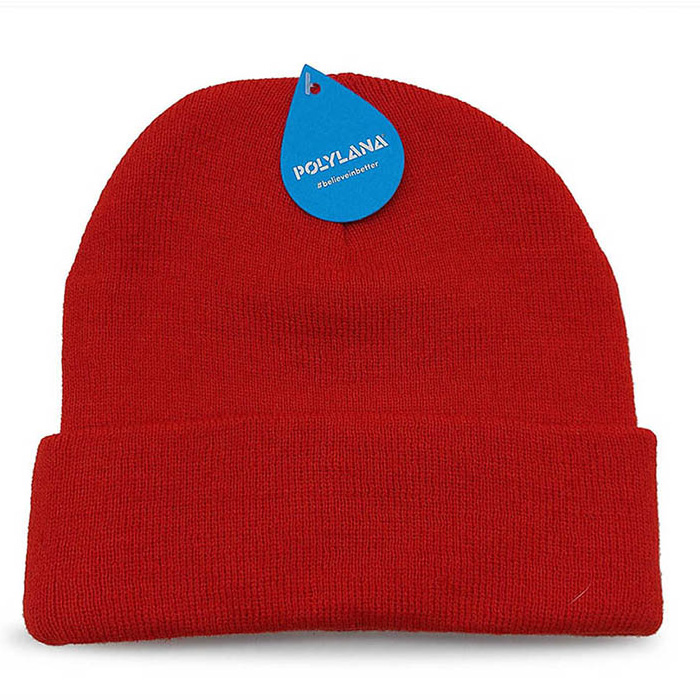 High-end version of the classic beanie with a turn-up, using environmentally friendly polylana yarn.