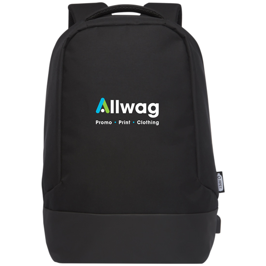 GRS certified backback featuring an open main compartment with organization panel, padded 15 laptop sleeve, and 2 RFID protection pockets. USB port on the right side to easily connect and charge devices from the interior. Comes with padded shoulder straps, right shoulder strap, hidden zipper pocket, grab handle, and a trolley pass-through. Approximately 15 plastic bottles are recycled to make this bag. 600D of GRS certified recycled polyester.