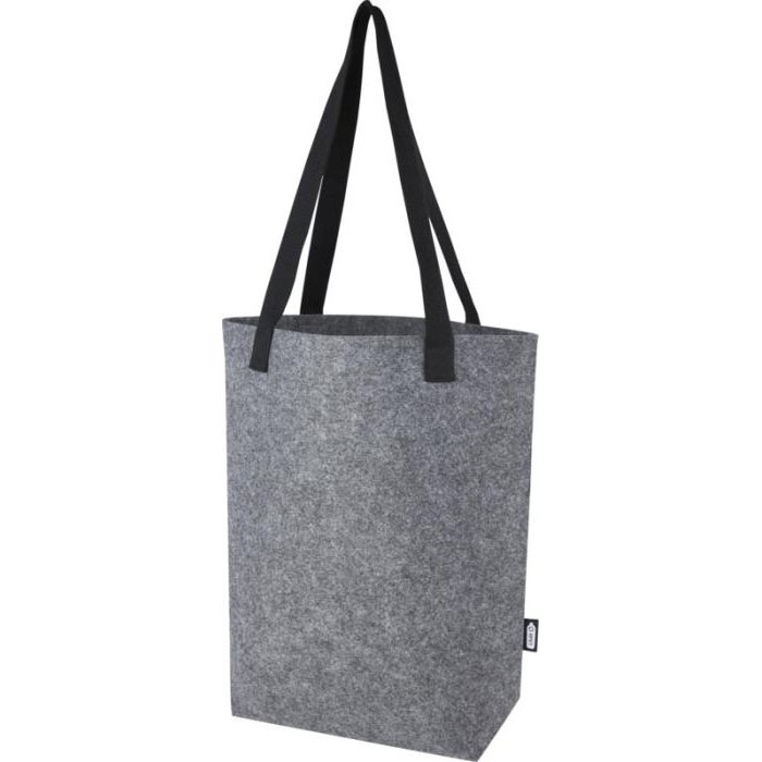 Practical tote bag made of soft and durable high quality GRS certified recycled felt. Features long woven cotton handles (30 x 2.5 cm) for optimal carrying comfort, and an extra wide bottom for maximum storage space.