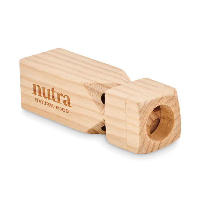 Wooden train whistle with a clear sound, lightweight yet strong construction, ideal for classroom or sound effects.