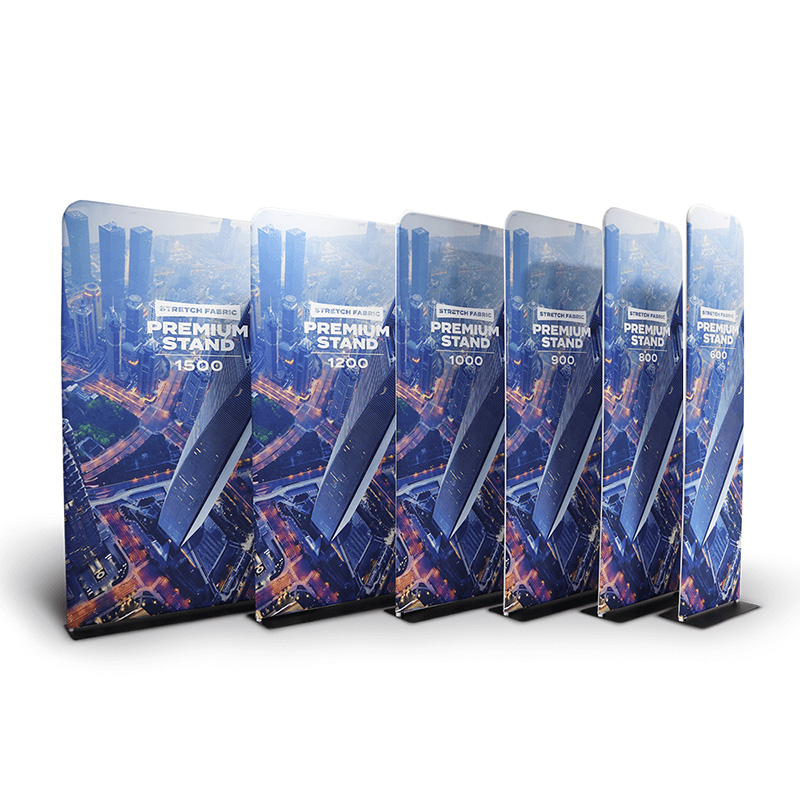 A tubular aluminium frame with heavy-duty base. Available in six widths and supplied with a dye-sublimation printed stretch fabric graphic.