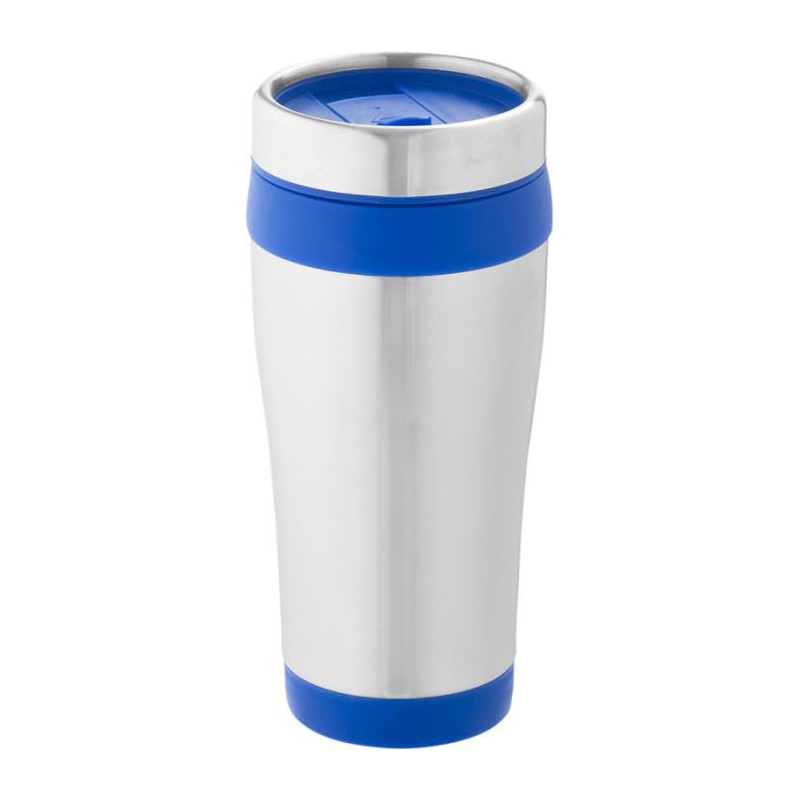 Whether for drinking a morning coffee when travelling or enjoying a nice cup of tea at the office, the Elwood RCS recycled stainless steel tumbler offers the solution. The tumbler's insulated double-wall keeps drinks cold or hot for a long time. Because of the twist-on thumb-slide lid beverages are easy to drink. The combination of stainless steel and plastic makes the tumbler very strong, resistant to corrosion and easy to clean. Volume capacity: 410 ml.