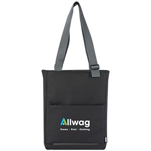 Aqua 14" GRS recycled water resistant laptop tote bag. Capacity: 14 litres. Features a dedicated tablet sleeve, a 14andicirc; laptop compartment, multiple pockets for organisation, a front pocket with organisation panel, adjustable 35 cm long handles, and a luggage strap.