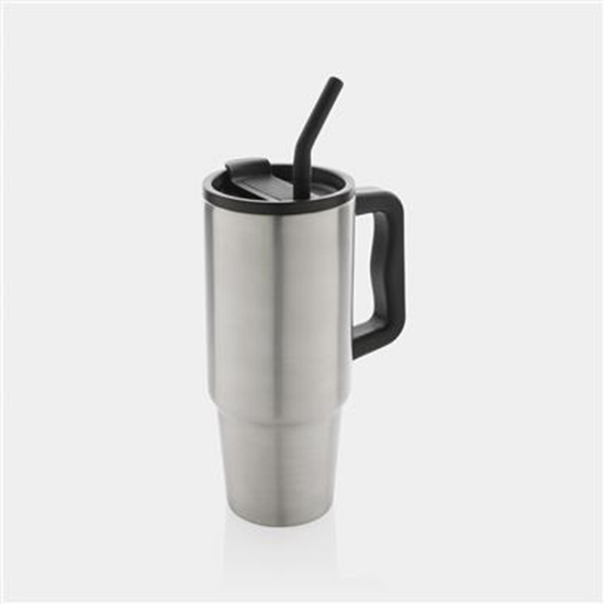 Experience the spacious yet conveniently portable embrace of our generously sized tumbler andndash; not too big, not too small. Its comfort-grip handle and slim base make it a perfect fit for most cup holders, ensuring you stay refreshed whether you're enduring a long day of meetings, conquering a rowing class, or embarking on a trip out of town. Crafted from durable recycled stainless steel, this 900ml tumbler rises to the hydration challenge. This double-walled, vacuum-insulated tumbler comes complete with a spill secure lid, straw, and a silicone straw tip. Versatility is key, making it suitable for both hot and cold beverages. The screw-on lid boasts a dual function, offering a convenient drinking spout or the option to use a straw. We recommend handwashing for optimal care. Made with RCS (Recycled Claim Standard). RCS certification ensures a completely certified supply chain of the recycled materials. Total recycled content: 70% based on total item weight. BPA free.