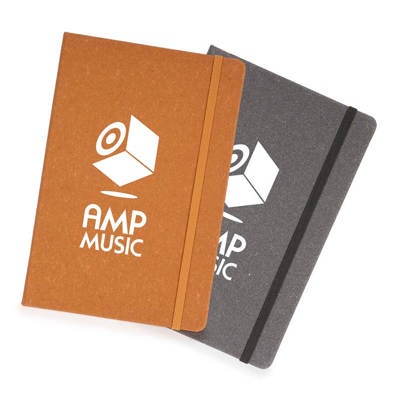 A5 bonded hardcover notebook with a 75% recycled leather cover, 96 lined cream sheets, ribbon bookmark and black elastic closure. The perfect size to carry in your bag when on the go whilst displaying your brand message. Product can be printed up to 4 spot colours or debossed/foil blocked.