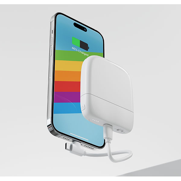 Xoopar Ice-P powerbank. 5,000Mah. LED light. USB-C input. Supplied with a USB/Type-C charging cable. Made from 28% recycled plastic. GRS certified recycled materials. Individual packaging - Card Box. Outer quantities - 50pcs. Eco packaging - Recycled FSC Card