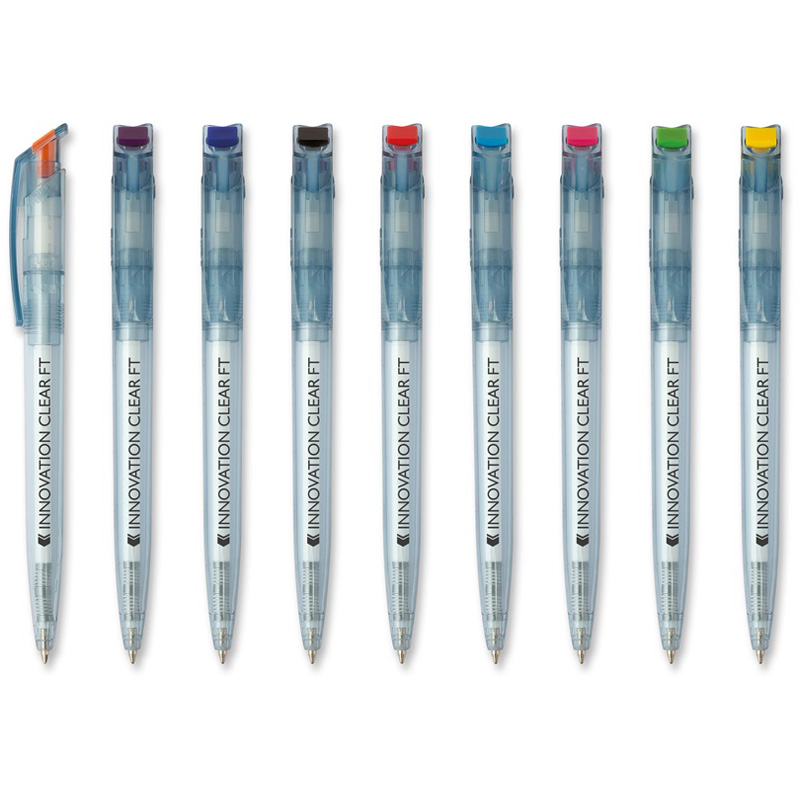Retractable pen made of rPET material, i.e. from recycled water bottles. Excellent print area on barrel and clip. The coloured square on the clip gives this pen the WoW factor.