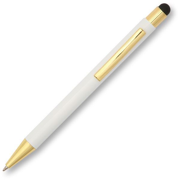 Crafted from recycled aluminium and features elegant gold fittings, giving it a stylish appearance. An added stylus touch for tablets and screens enhances its functionality. With a large print area for maximum exposure of your customer’s message, this pen is an ideal eco-friendly promotional gift.