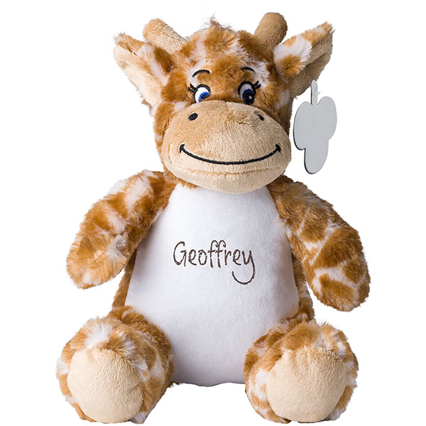 Plush giraffe. Embroidered eyes. White torso. Bulk packed. Carton qty 50pcs. Eco packaging. Pallet - 800.