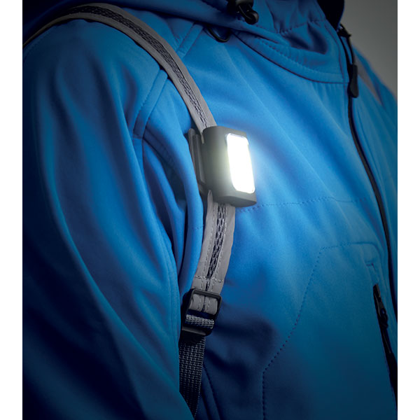Mini portable COB rechargeable torch. 400mAh rechargeable battery. 6 different light modes. Silicone clip with magnetic closure. Supplied in white midocean box. 120 per carton, carton weight 7kgs