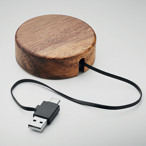 Acacia wireless retractable charger. 15W wireless charger with retractable cable. Compatible with all wireless devices. Output - 15W. Quick charging. Supplied with a USB Type-C cable. Supplied in white midocean box. 100 per carton, carton weight 8.5kgs