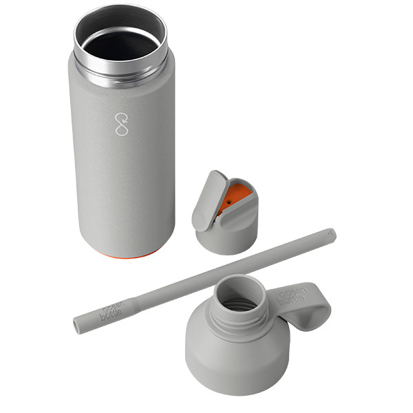 Ocean Bottle GO. Capacity: 500ml. Vacuum insulated recycled stainless steel bottle. Due to the silicone straw the GO bottle can only be used for cold drinks. Keeps drinks cold for up to 18 hours. Each Ocean Bottle is entirely carbon neutral and collects 1,000 plastic bottles to improve livelihoods in coastal communities.