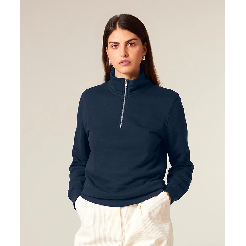 Premium, unisex, quarter-zip sweatshirt in 85% organic cotton and 15% recycled polyester. Medium fit, 280gsm. Ideal for corporate wear. Excellent printability.